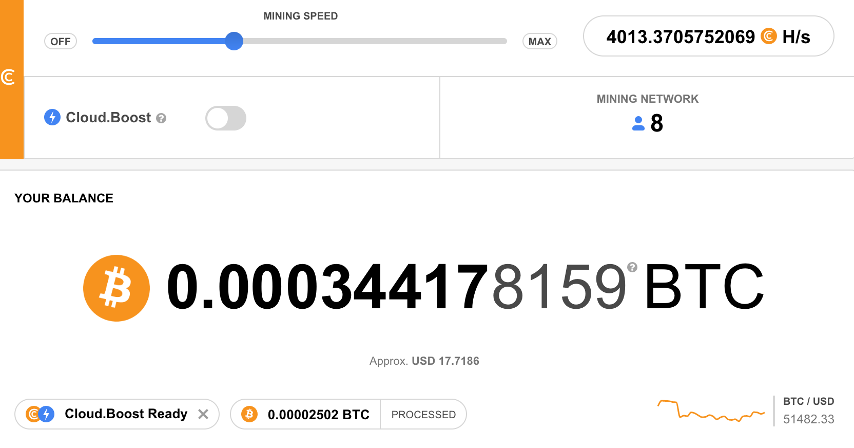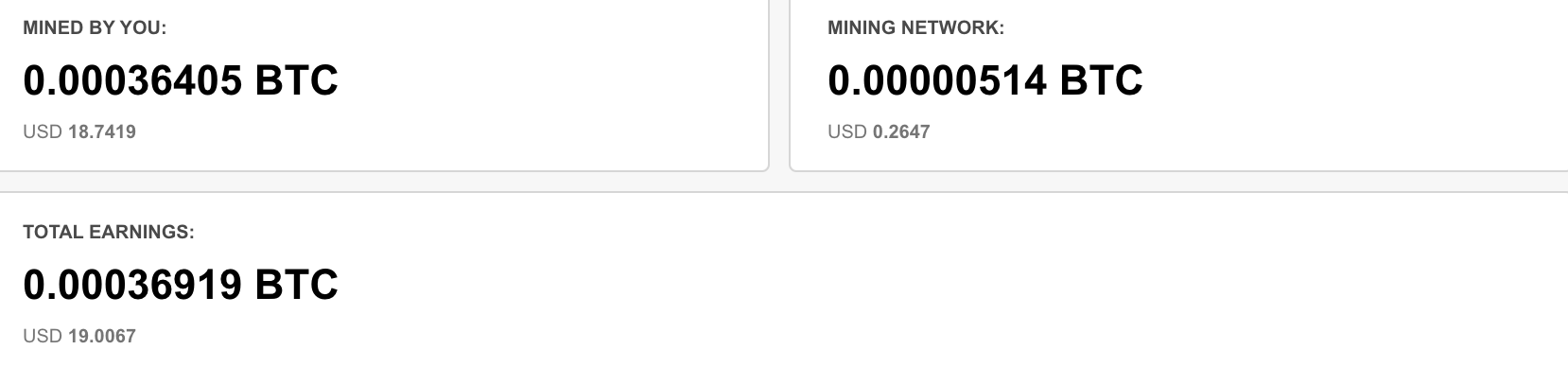 가량의 사토시를 채굴했습니다. 아무래도