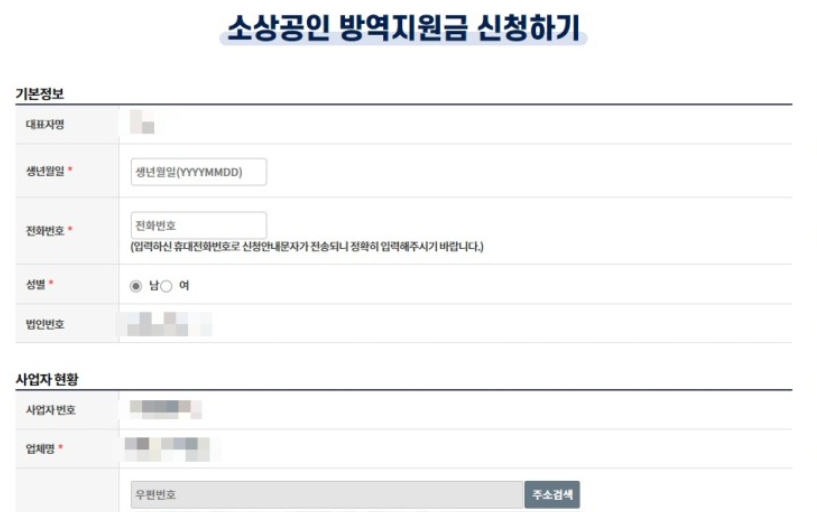 방역지원금을 신청을 하고 대표자만