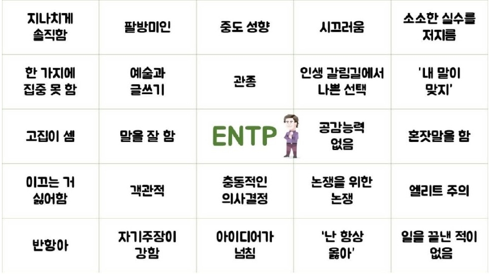 ENTP에 대해서 정리하는 시간을