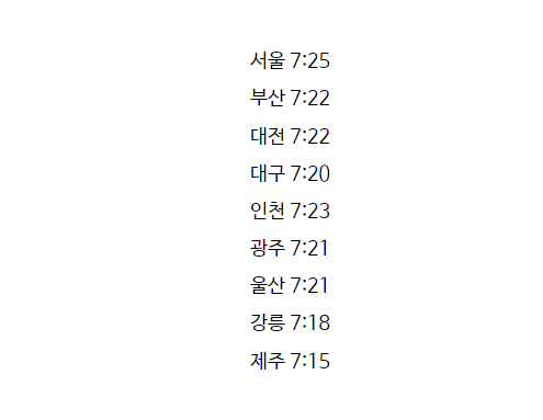 일출시간은 아래와 같습니다.