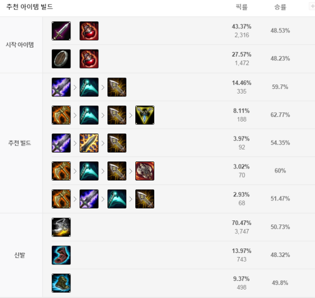 아이템은 보통 티아멧 정수약탈자 무한의 대검, 스태틱