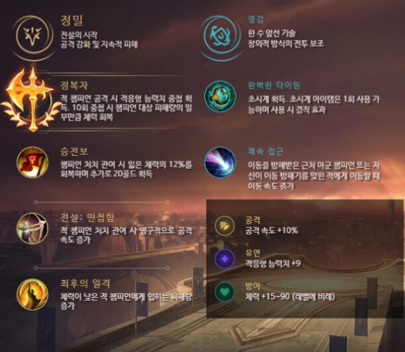 효과를 더 잘 갖기위해서 이랍니다 정복자의 룬도 있습